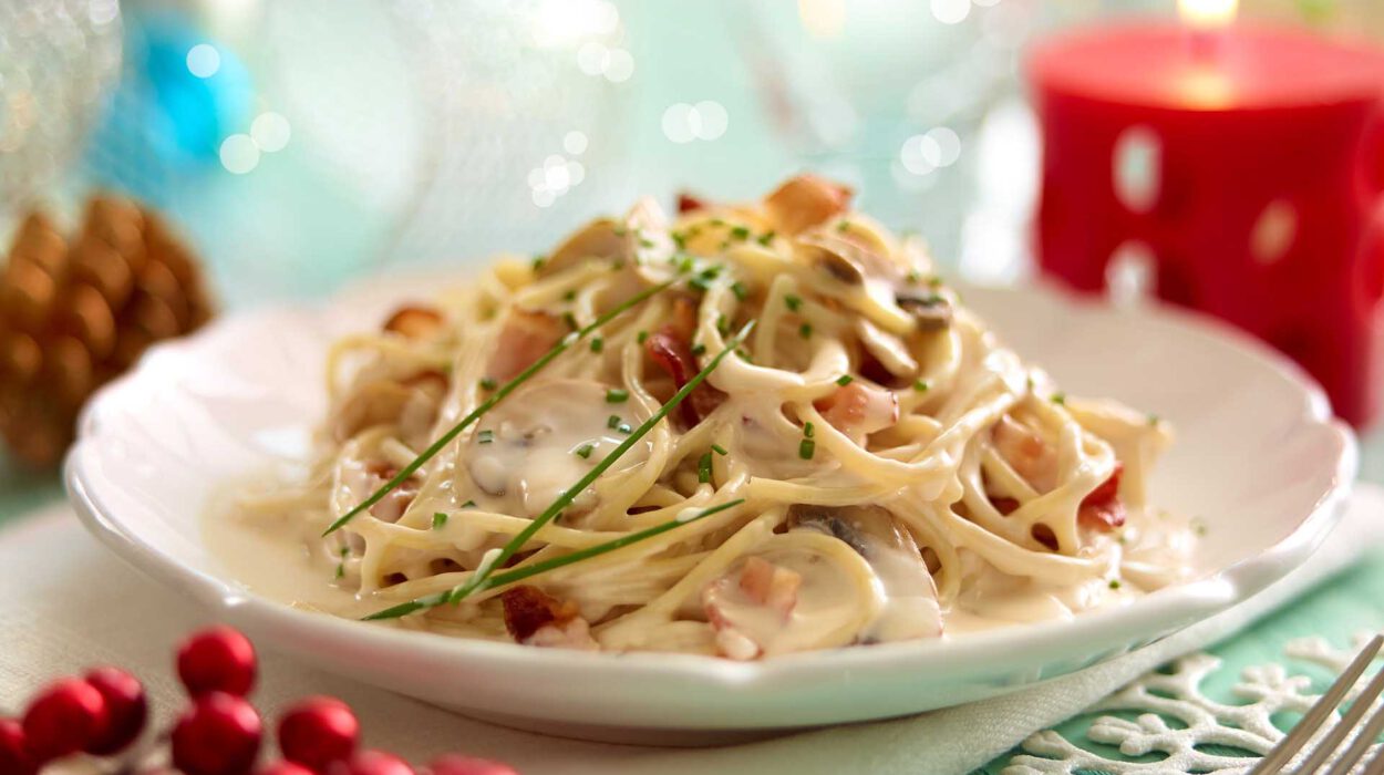 Espagueti con Champiñones y Bacon